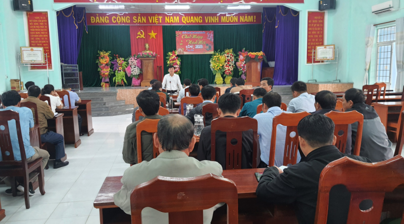 Theo báo cáo của Đảng ủy, việc tổ chức Tết Nguyên đán Quý Mão năm 2023 được Đảng ủy, chính quyền, Mặt trận Tổ quốc, hội, đoàn thể, cơ quan, đơn vị quan tâm lãnh đạo, chỉ đạo và tổ chức triển khai thực hiện tốt. Tập trung chỉ đạo công tác thông tin, tuyên truyền, trang trí trực quan; sửa chữa, tu tảo nhà bia ghi tên liệt sỹ đảm bảo khang trang, sạch đẹp phục vụ thân nhân gia đình liệt sỹ và nhân dân đến viếng; tổ chức thăm, tặng quà các gia đình chính sách tiêu biểu, hộ nghèo, các đối tượng bảo trợ xã hội, đảm bảo nhiệm vụ trực Tết; tăng cường công tác an toàn vệ sinh thực phẩm; tổ chức sửa chữa hệ thống giao thông bảo đảm giao thông thuận lợi, phục vụ tốt việc vận chuyển hàng hóa, đi lại của nhân dân trước, trong và sau Tết. Các đơn vị đã phân công lãnh đạo, cán bộ công chức, viên chức trực Tết theo đúng quy định.